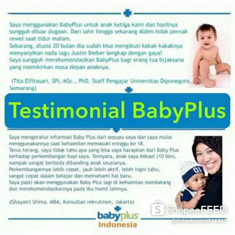 Babyplus merupakan produk import langsung dari Amerika. Produk ini mengeluarkan bunyi dentuman khusus seperti bunyi detak jantung yang sudah dipatenkan dan sudah terbukti secara ilmiah bisa merangsang perkembangan otak bayi selama dalam kandungan.